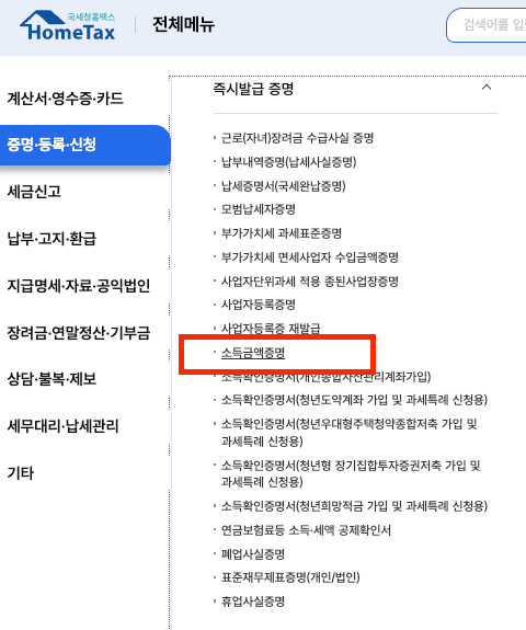 2. 홈택스에서 사업자 소득금액증명원 발급하는 절차